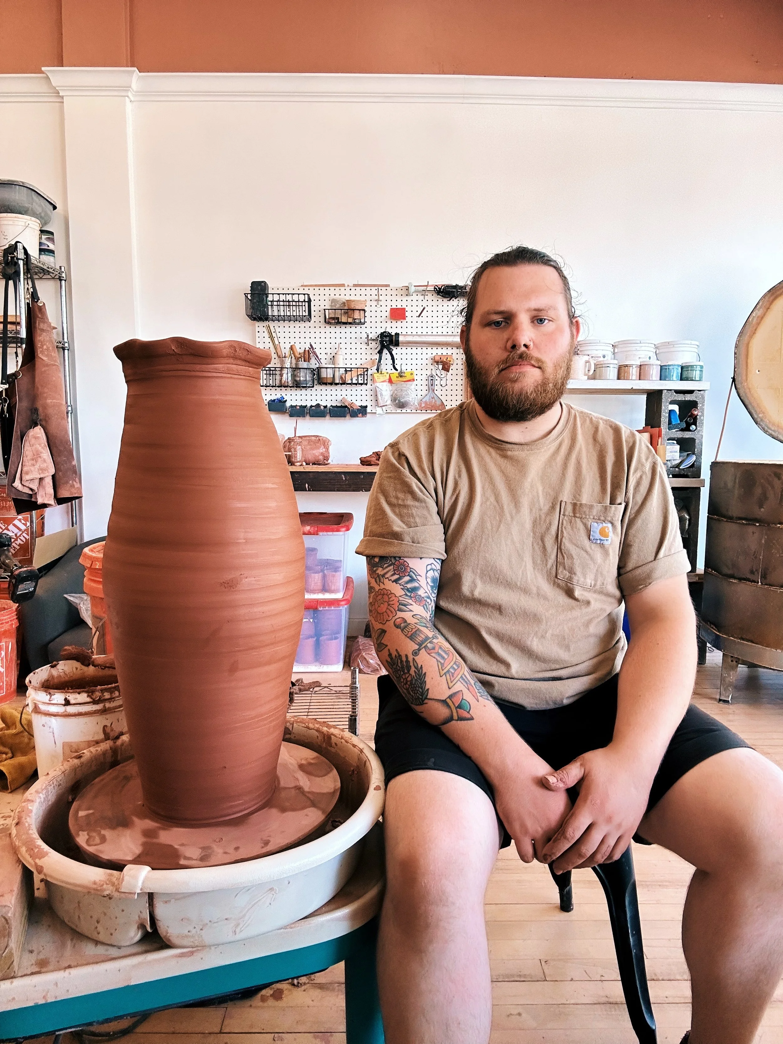 Alec Hoogland (they/them) graduated with a degree in ceramics in 2016, marking the inception of their lifelong passion for the craft. Their undergraduate studies provided a solid foundation, instilling in them a deep appreciation for the medium and nurturing their artistic sensibilities. Following graduation, Alec embarked on a transformative journey, spending 1.5 years immersed in the dynamic environment of a production studio. This experience proved invaluable, allowing Alec to refine their technical skills, develop an understanding of the production process, and gain firsthand insight into the business side of ceramics.