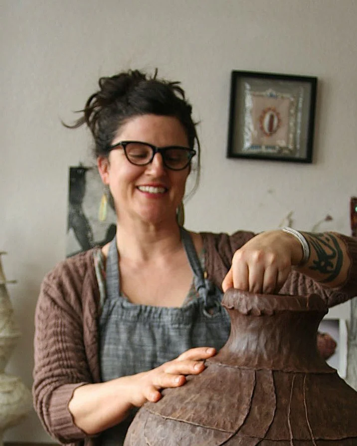 Originally from Falmouth, MA., Candice Methe is a studio artist and educator. She has been working in clay for twenty-five years and is a current resident at the Roswell Artist in Residence Foundation in Roswell, NM. She received her BFA in Ceramics and Art History from Northern Arizona University, Flagstaff, AZ. and her MFA from the University of Minnesota, Minneapolis. Inspired by historical objects and traditional ways of making, she has traveled to Japan, Ghana, Nicaragua, Mexico among other places to study the traditional practices of artisans working in clay. In pursuit of her artistic, peripatetic practice she has done residencies long-term and short-term at Santa Fe Clay, Red Lodge Clay Center and the Archie Bray Foundation for the Ceramic Arts. When not in the studio, you can find her outside exploring ghost towns, ruins, road-side museums, mountains and rivers with her two dogs Loulee Streetfighter and Deming Bones.