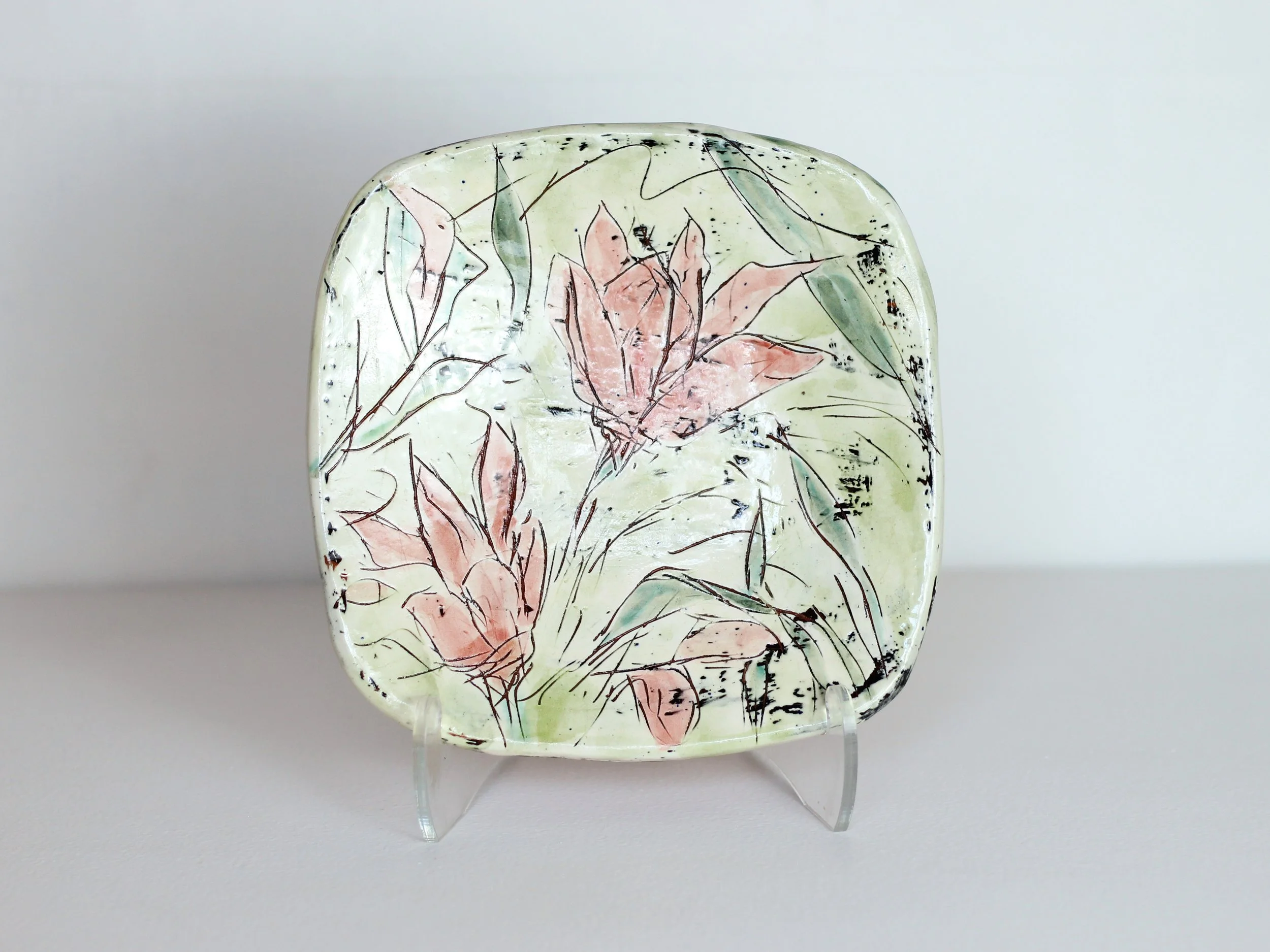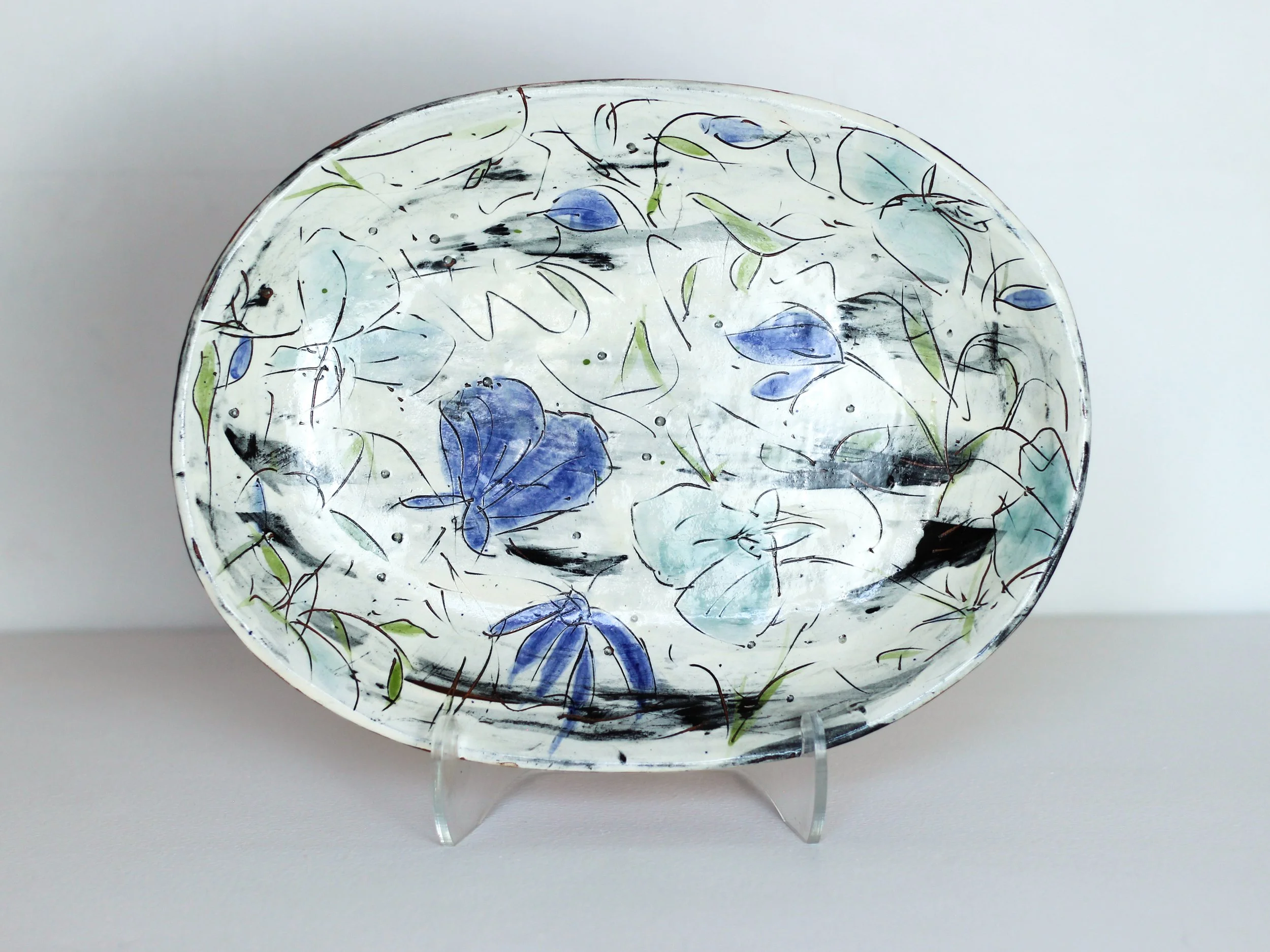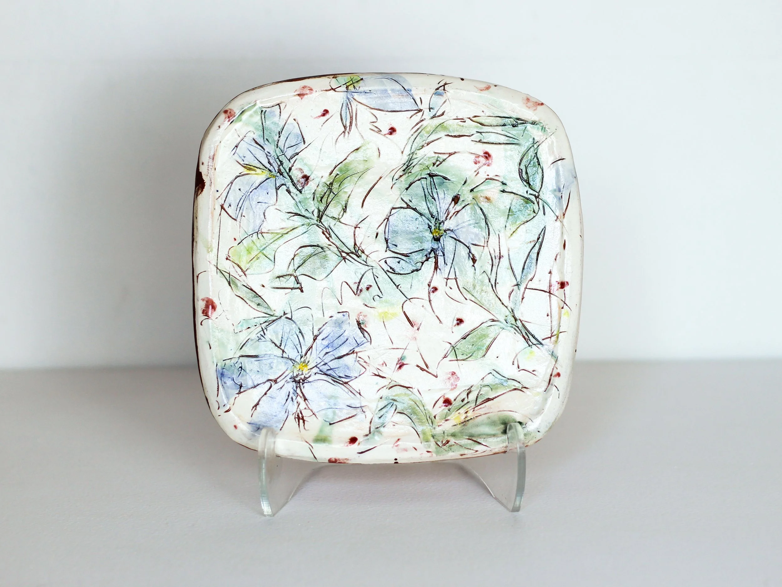 Kenney has been a potter for almost 50 years. She accidentally stumbled upon clay in the early seventies, and fell in love. Kenny’s most intensive training in clay was during her two and a half years at the KC art Institute as an “older” student. Over the years, Kenney built (with help) and fired a reduction kiln in KC; a raku kiln briefly at CRMS; a wood-fired kiln in Colorado with fellow potter, Peggy Malloy; and a soda kiln, with help of Blair Meerfeld and Trevor Dunn. Additionally, she has deeply explored terra cotta electric firing for Majolica and slip glazed work, briefly including tile installations. After many years of atmospheric firing, Kenney is reverting to terra cotta work. Production is limited these days.